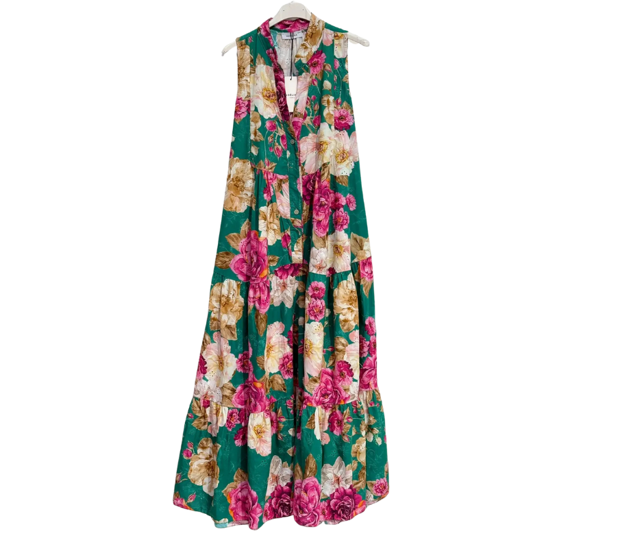 Italian Cotton Eyelet English Rose Sleeveless Maxi Dress.