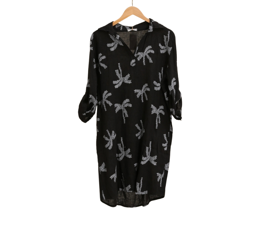 Italian Linen Pullover Knee Length Shirt Dress with Palm Print