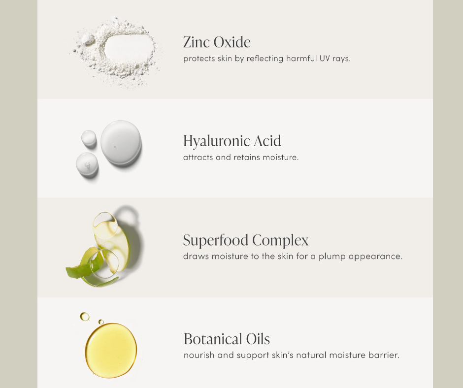- Superfood Complex draws moisture to the skin for a plump appearance.